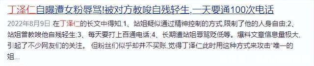 可随着时间推移,郝女士对丁泽仁的控制逐渐升级。 从最初的要求每天汇报行程,发展到消息必须秒回,甚至连穿着打扮、与谁见面都要事无巨细地报备。 有次丁泽仁因为拍广告耽误分钟没回消息,手机直接条骂人语音轰炸,每条点开都是不堪入耳的谩骂。
