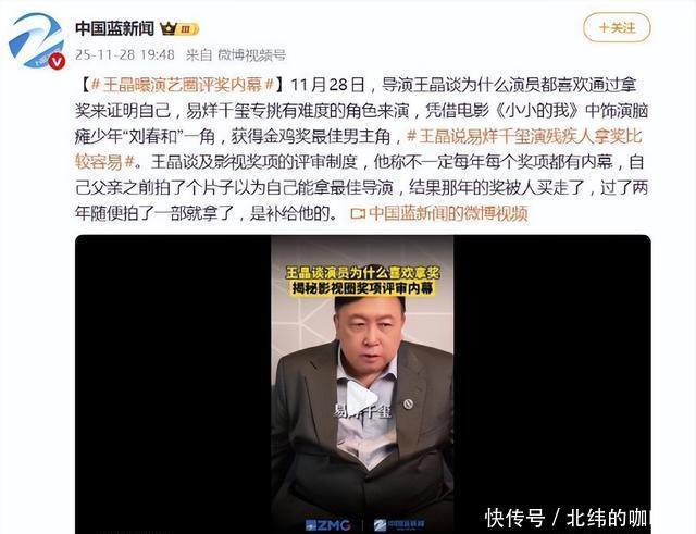 月底的一次直播中,王晶直言不讳地评论了易烊千玺凭借在《小小的我》中饰演脑瘫少年角色获得金鸡奖影帝一事。 他毫不客气地指出:“演员挑残疾人这种特殊角色演,拿奖更容易”,认为这类特殊群体角色天然具备“情感加分项”,从题材选择上就占据了优势。